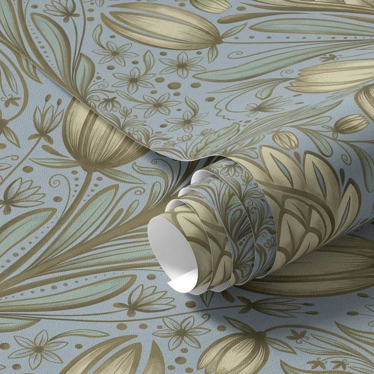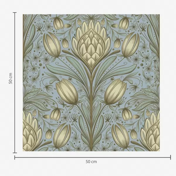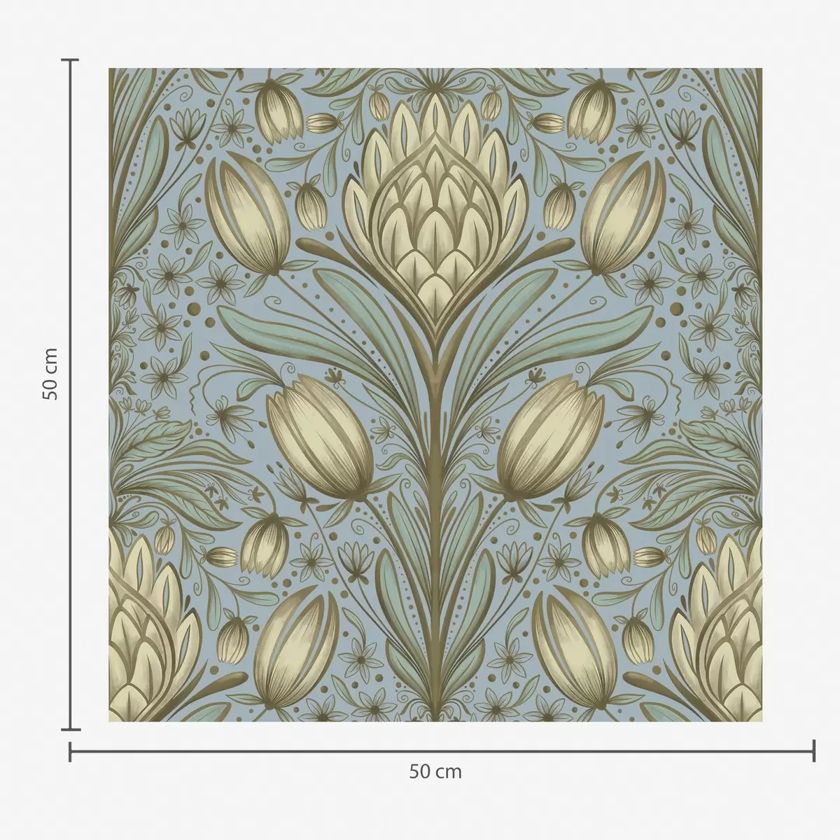 Papel pintado Estampado azul con alcachofas y tulipanes Nr. a00435