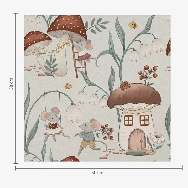 Papel pintado Simpáticos ratones y setas sobre el fondo de un elegante paisaje forestal Nr. a00450