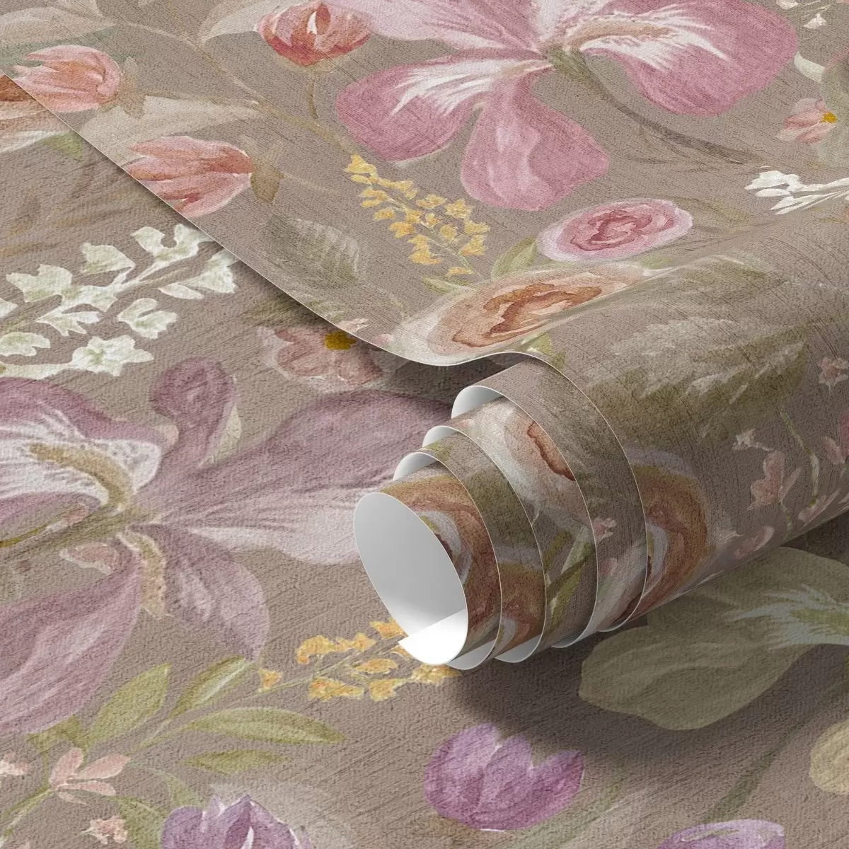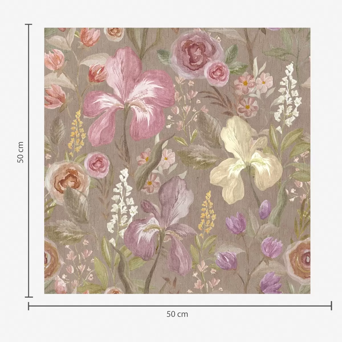 Papel pintado Vintage rosa iris patrón de flores sobre fondo beige con textura Nr. a00457