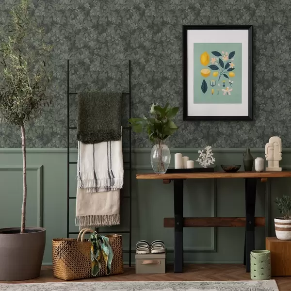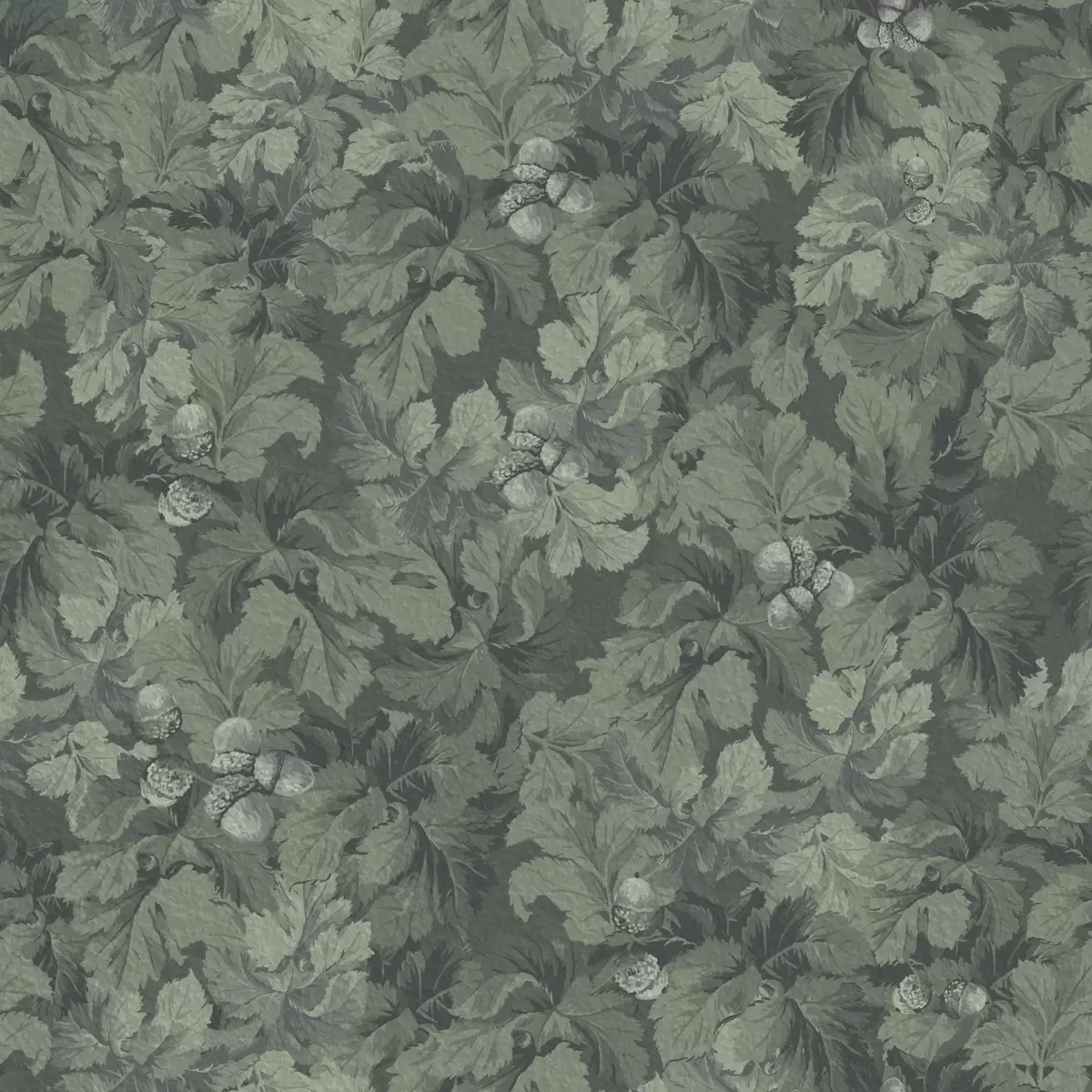 Papel pintado Textura oscura de hojas con bellotas en verde intenso Nr. a00461