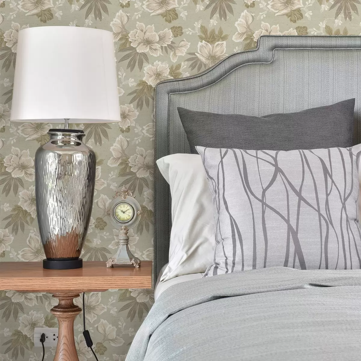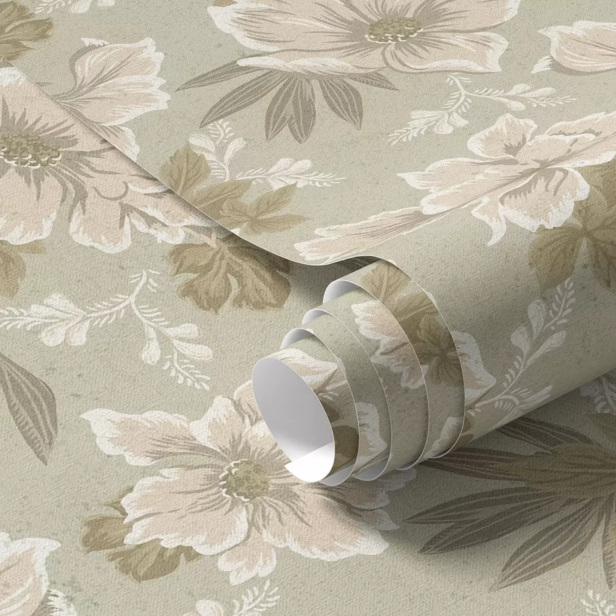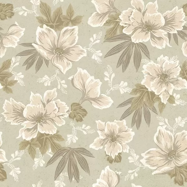 Papel pintado Flores color crema sobre fondo verde oliva Nr. a00462