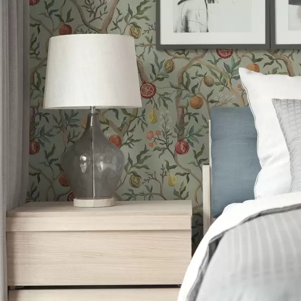 Papel pintado Granadas, peras y flores sobre fondo verde pálido Nr. a00465