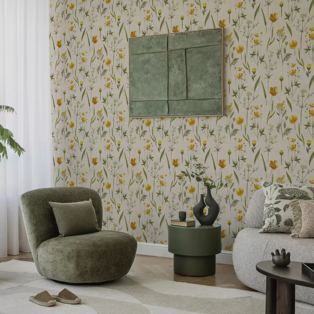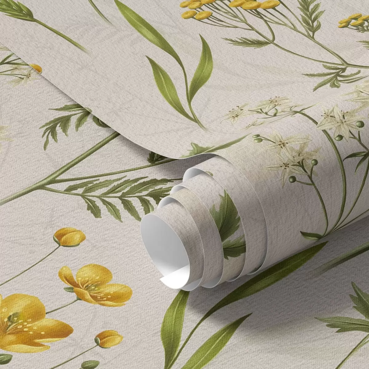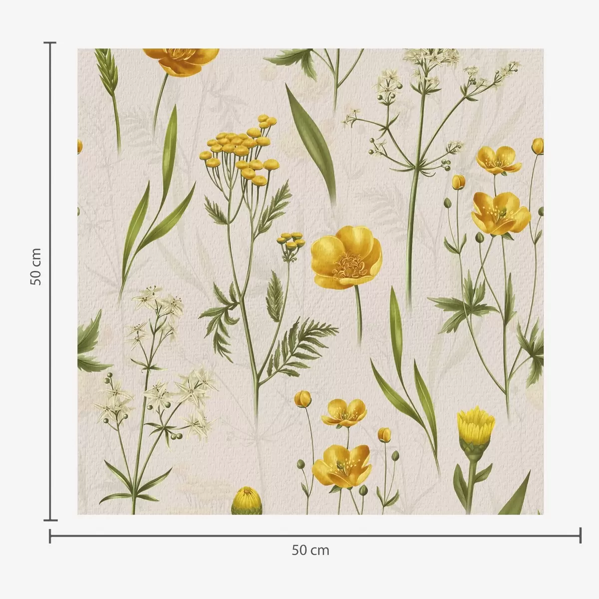 Papel pintado Flores amarillas y verdes sobre fondo beige Nr. a00472v2