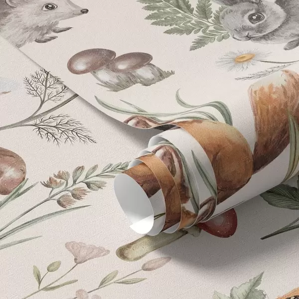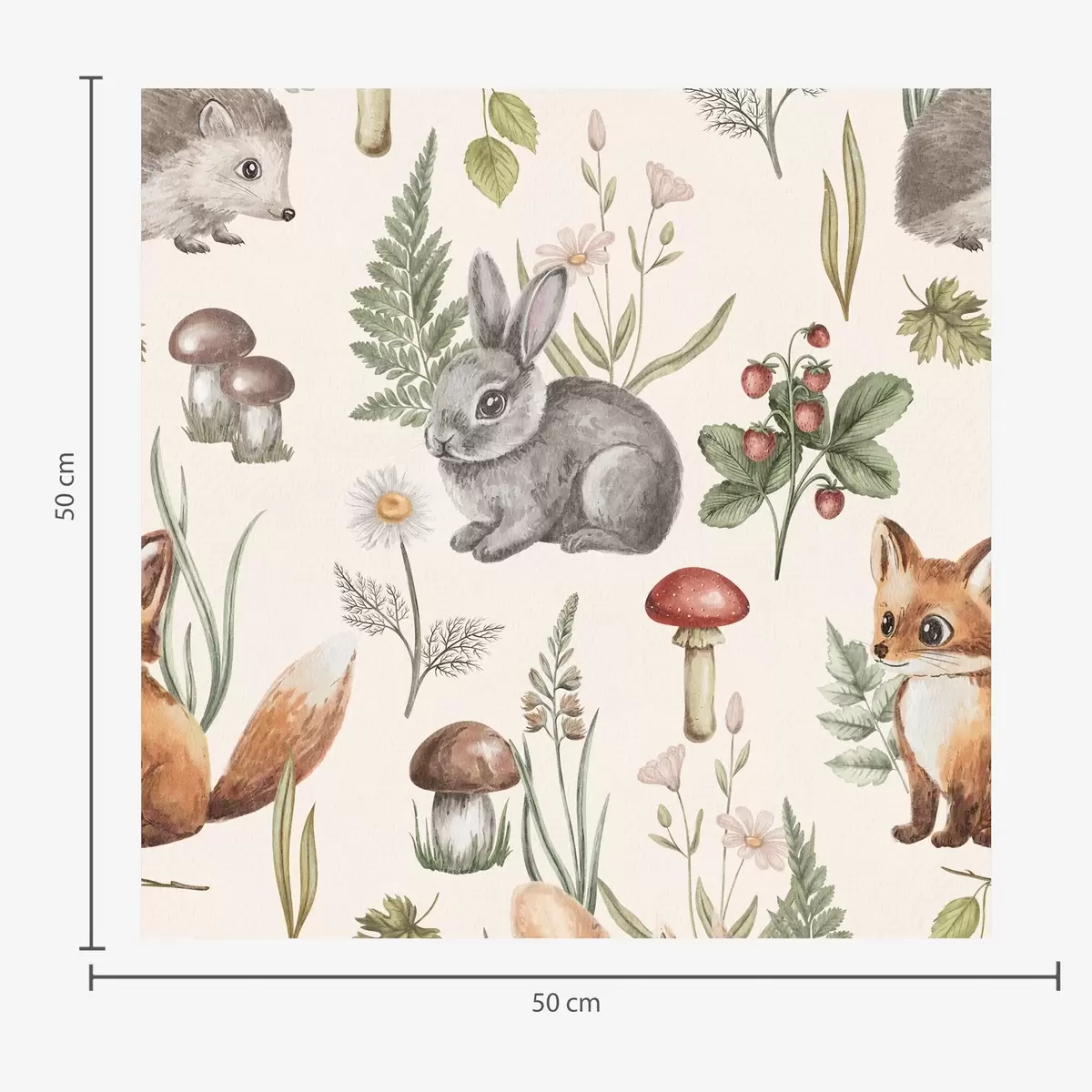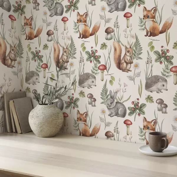 Papel pintado Animales, setas y plantas del bosque en un estilo de cuento de hadas Nr. a00477