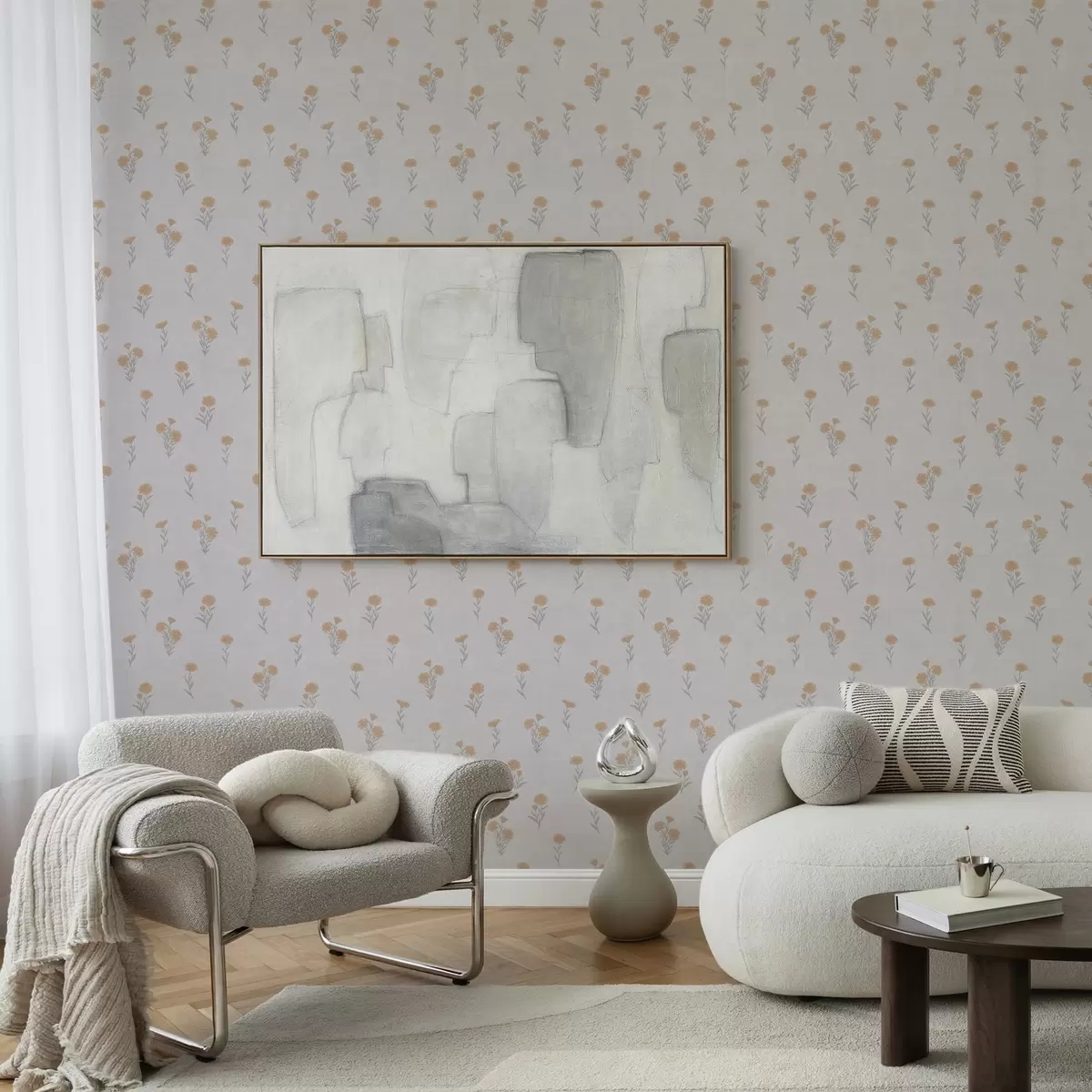 Papel pintado Pequeñas flores naranjas sobre fondo gris claro Nr. a00486