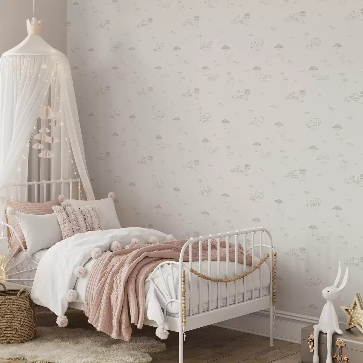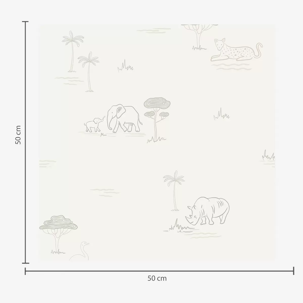 Papel pintado Safari minimalista: elefantes, rinocerontes, leopardos y palmeras Nr. a00492