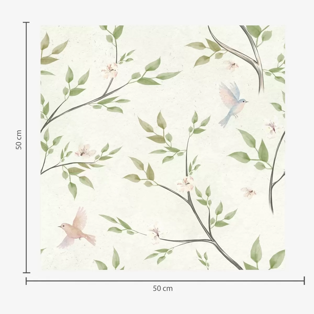 Papel pintado Ramas acuareladas con hojas y pájaros sobre un fondo claro Nr. a00496