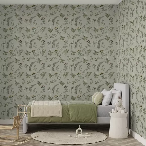 Papel pintado Hierbas y helechos botánicos en gris verdoso pálido Nr. a00498