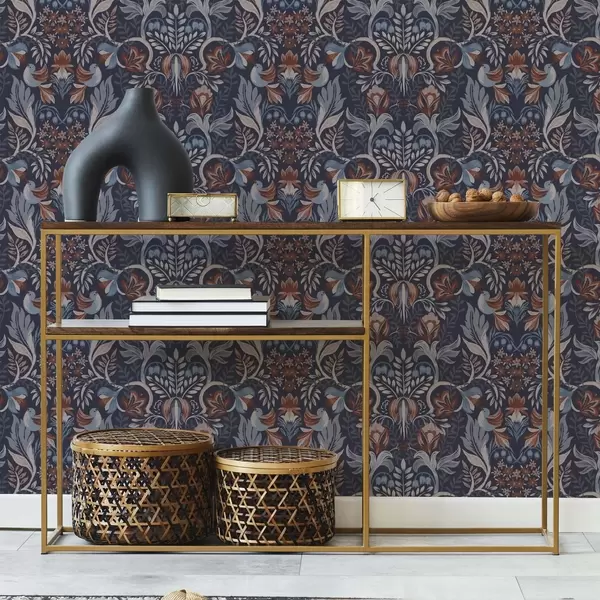 Papel pintado Flores y pájaros populares sobre fondo azul oscuro a00502