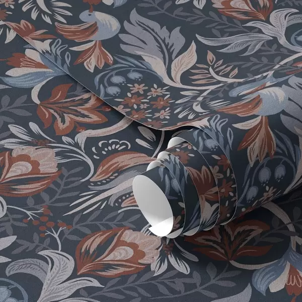 Papel pintado Adorno popular con pájaros, índigo intenso Nr. a00502v1