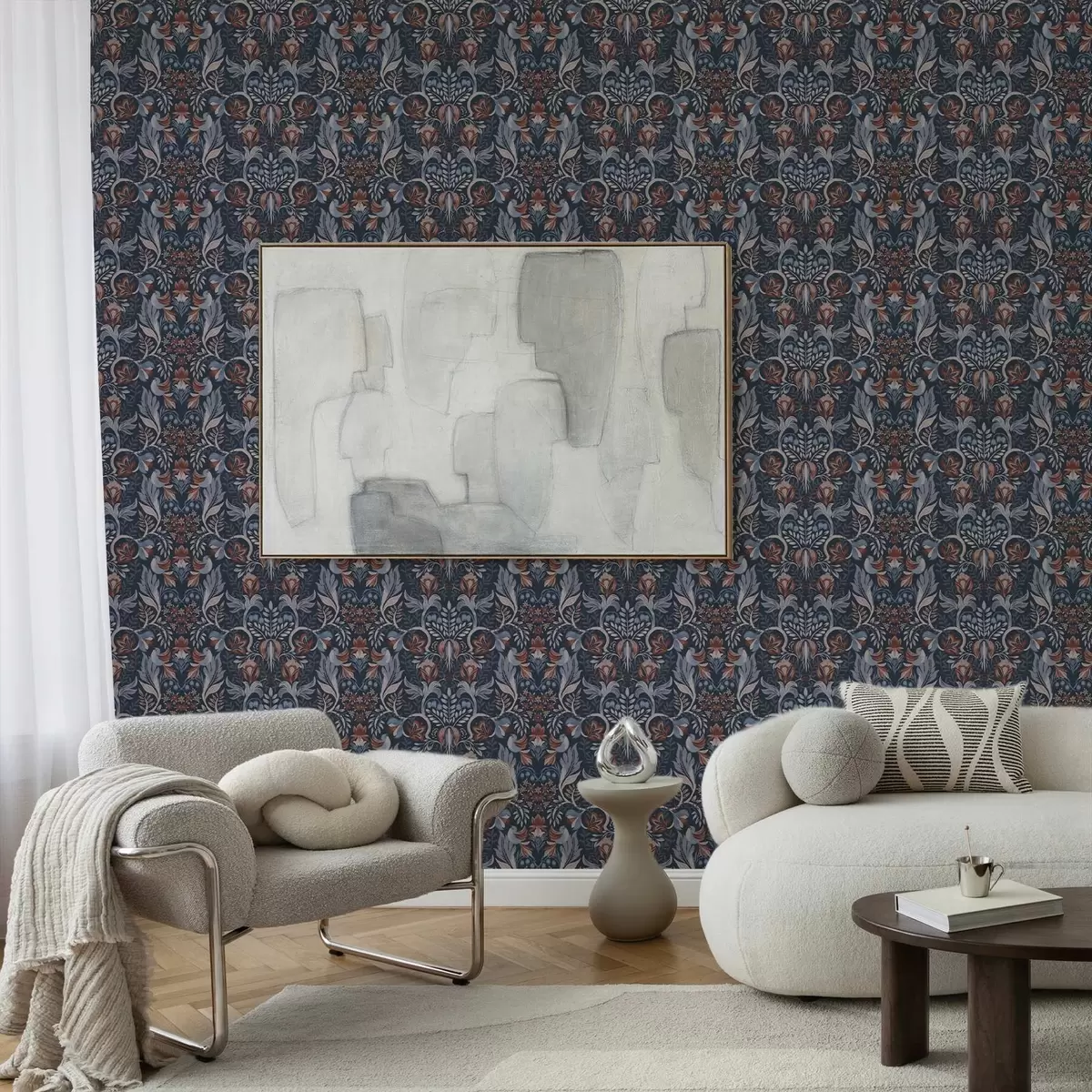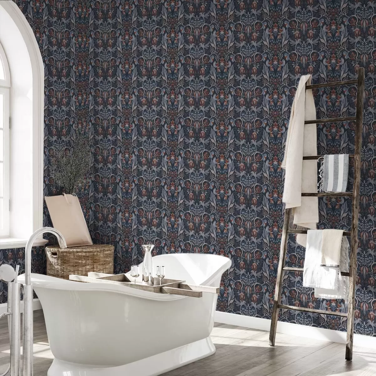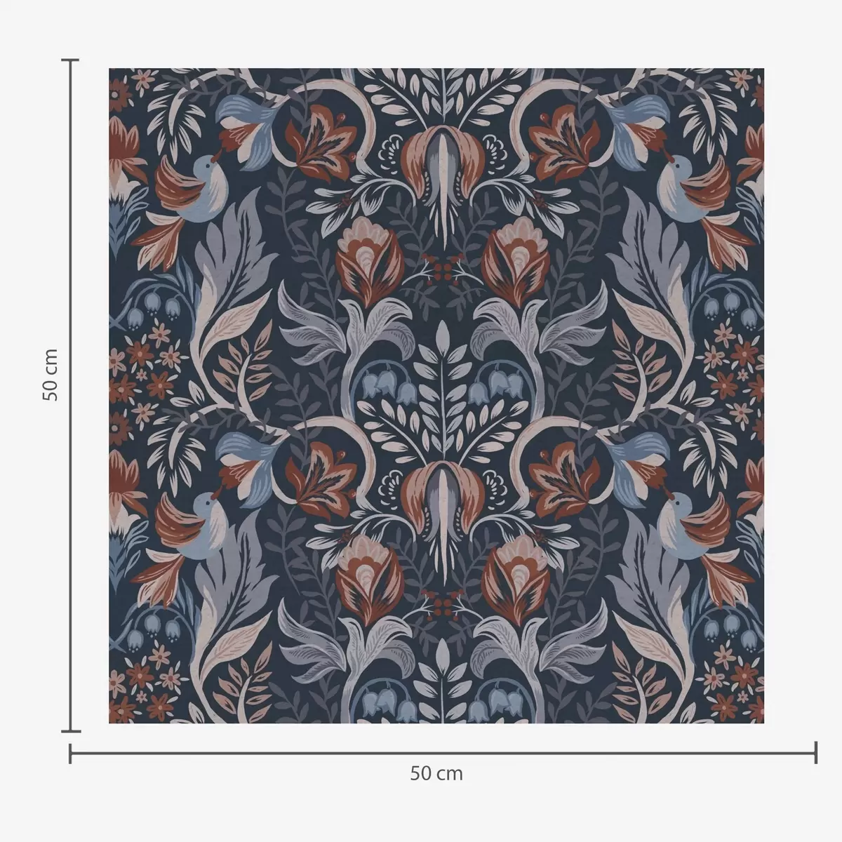 Papel pintado Adorno popular con pájaros, índigo intenso Nr. a00502v1