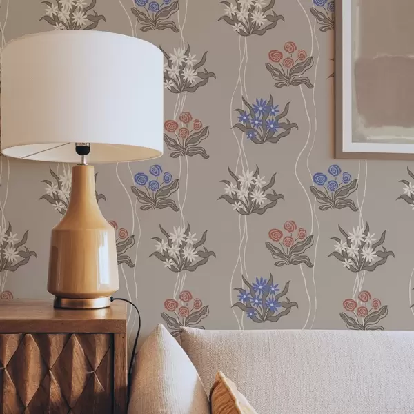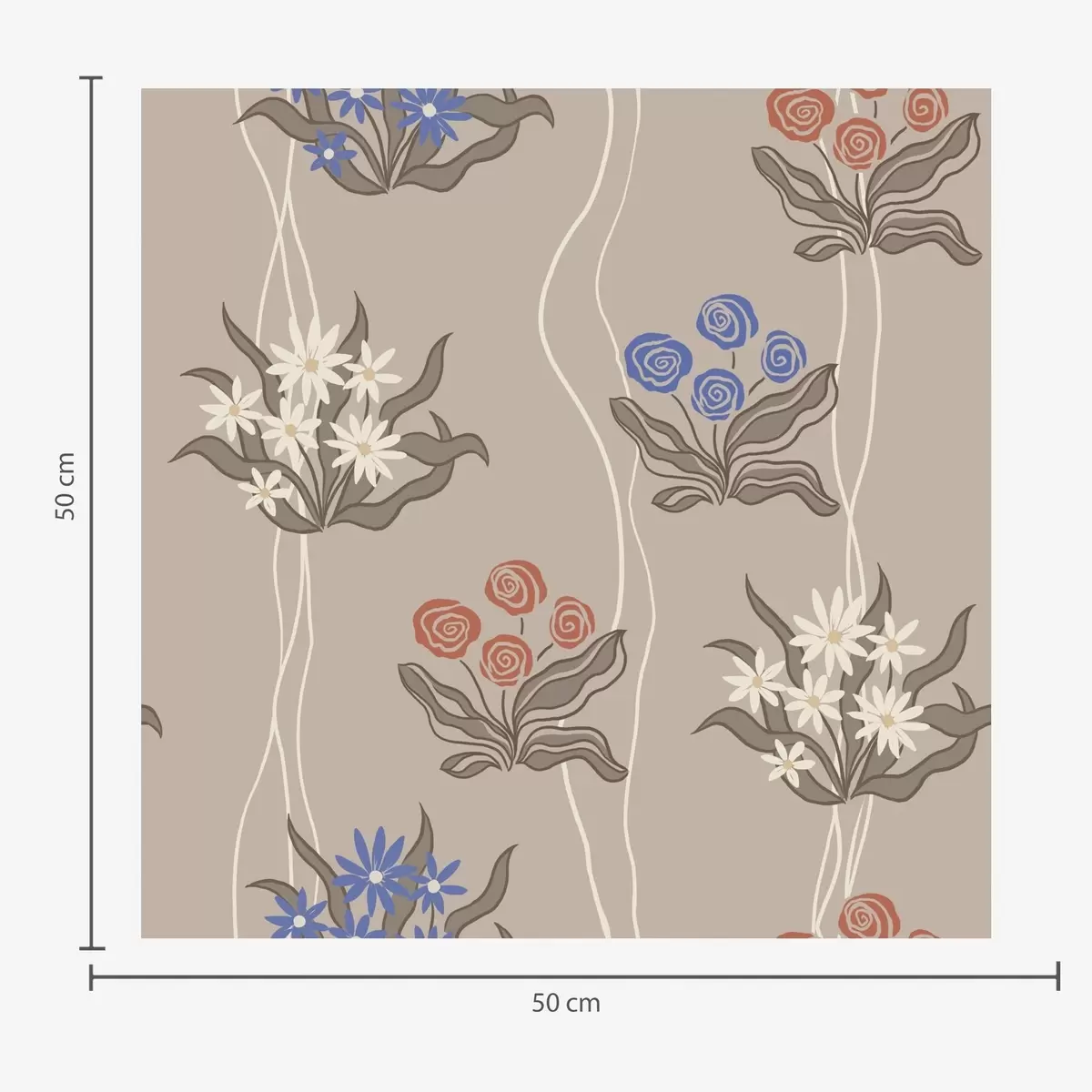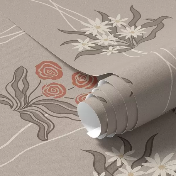 Papel pintado Flores retro con líneas onduladas sobre un fondo beige cálido Nr. a00503