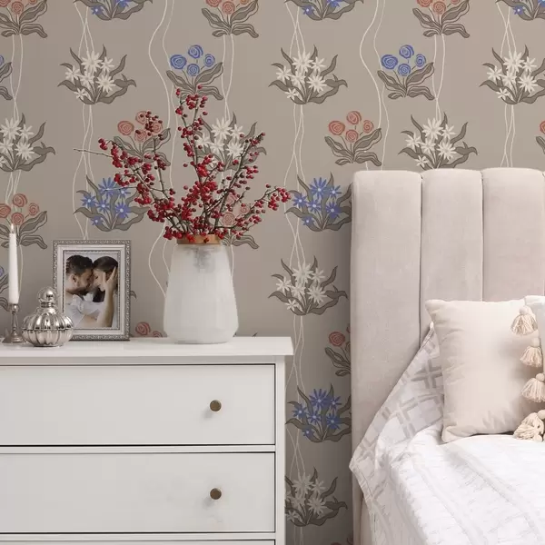 Papel pintado Flores retro con líneas onduladas sobre un fondo beige cálido Nr. a00503