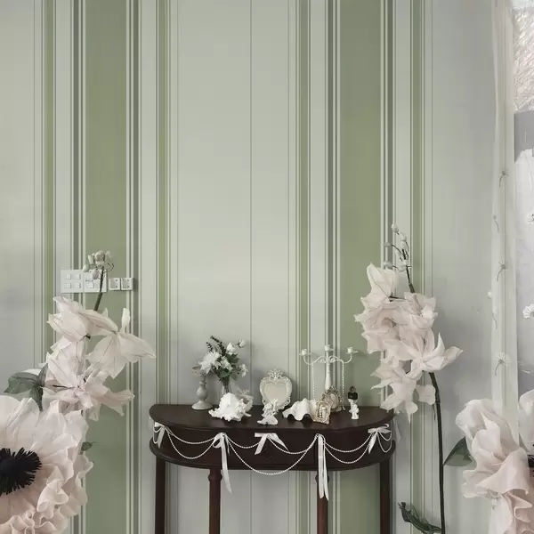 Papel pintado Fondo crema con una ancha franja central verde Nr. a00519