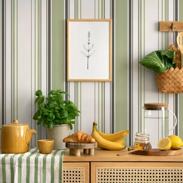 Papel pintado Fondo blanco con una mezcla de rayas verdes y negras Nr. a00520