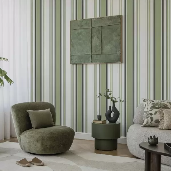 Papel pintado Fondo blanco con una mezcla de rayas verdes y negras Nr. a00520