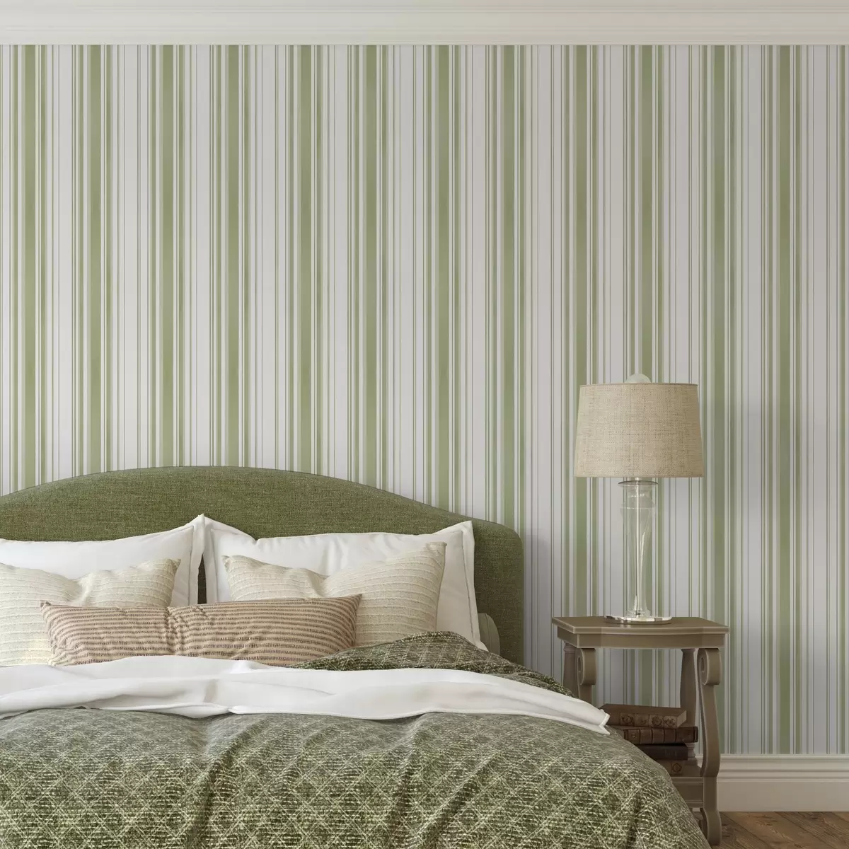 Papel pintado Rayas verdes de anchura variable sobre fondo claro Nr. a00523
