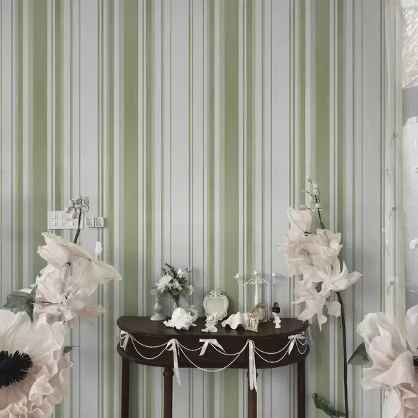 Papel pintado Rayas verdes de anchura variable sobre fondo claro Nr. a00523