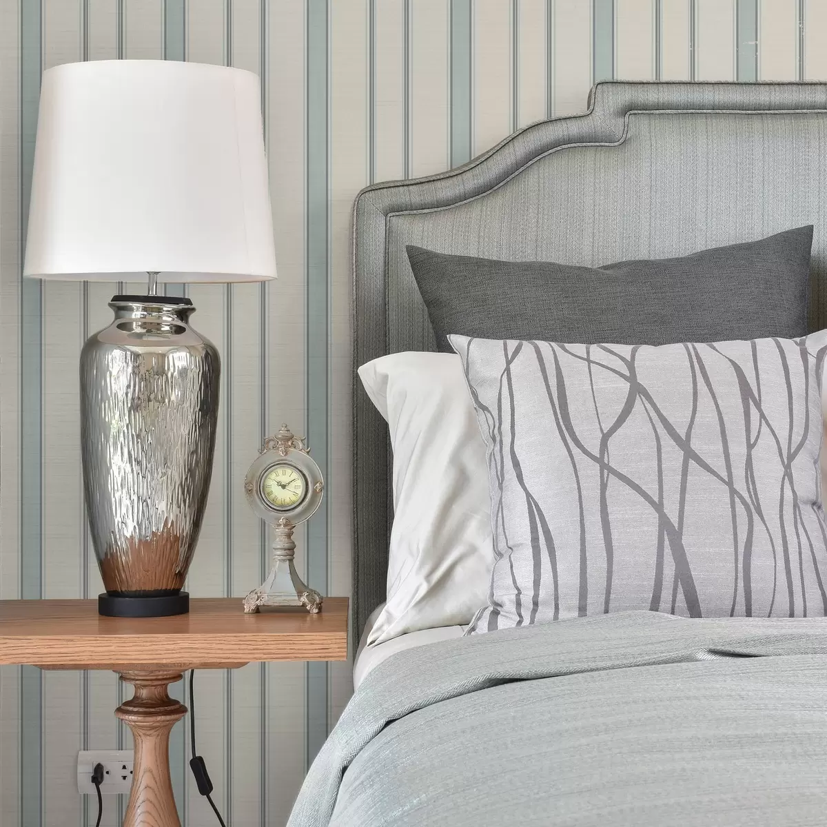 Papel pintado Rayas azules y grises sobre fondo crema Nr. a00555