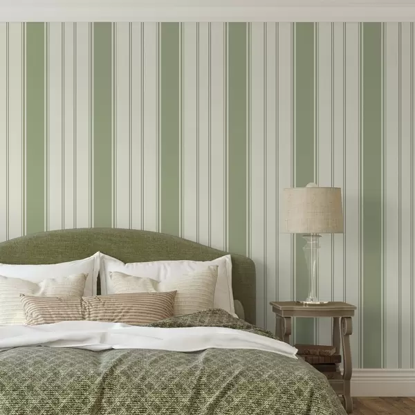 Papel pintado Fondo crema con rayas anchas verde claro Nr. a00561