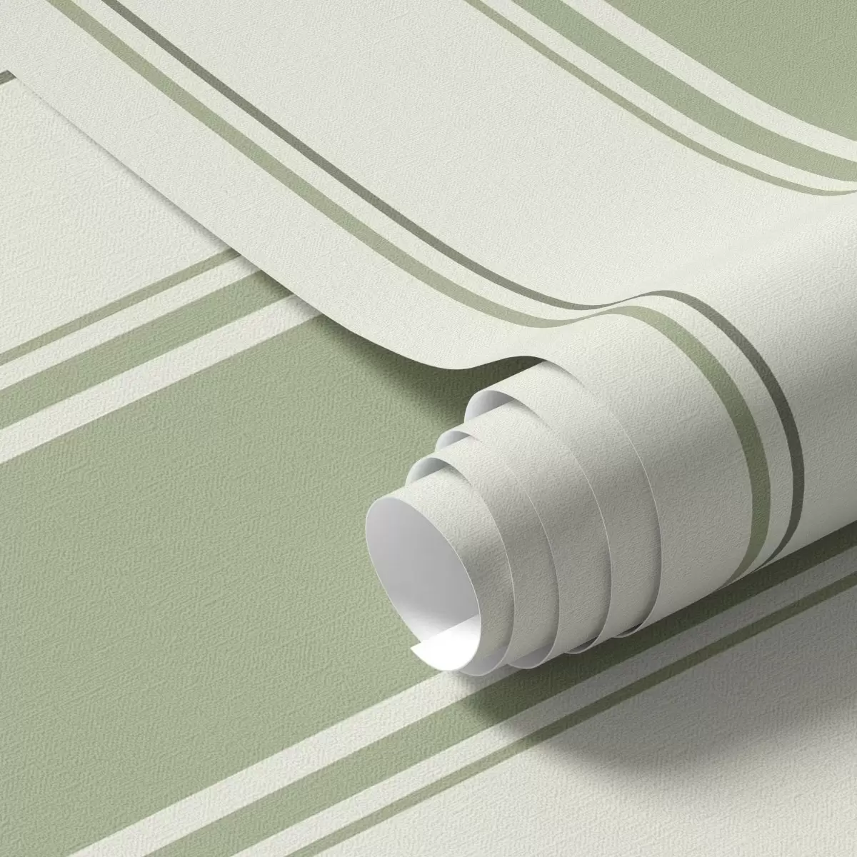 Papel pintado Fondo crema con rayas anchas verde claro Nr. a00561