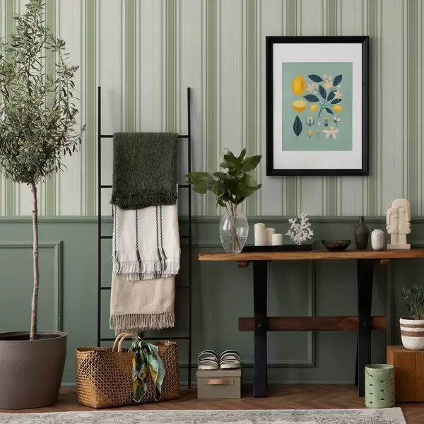 Papel pintado Fondo claro con rayas verdes oscuras a00562