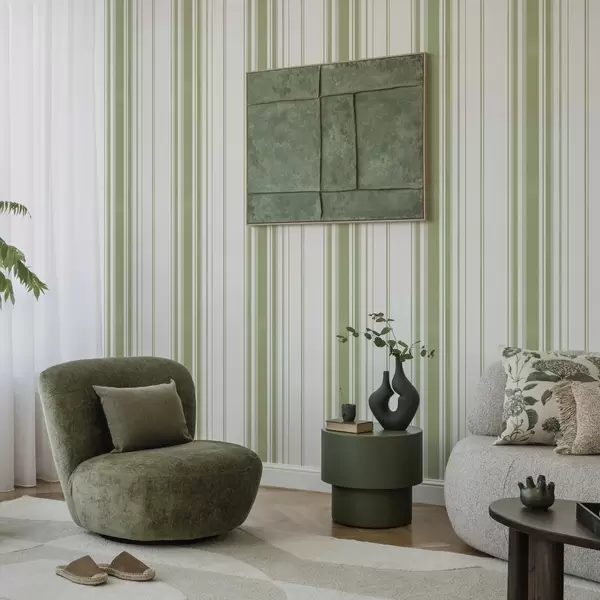 Papel pintado Rayas verticales verdes de anchura variable Nr. a00565