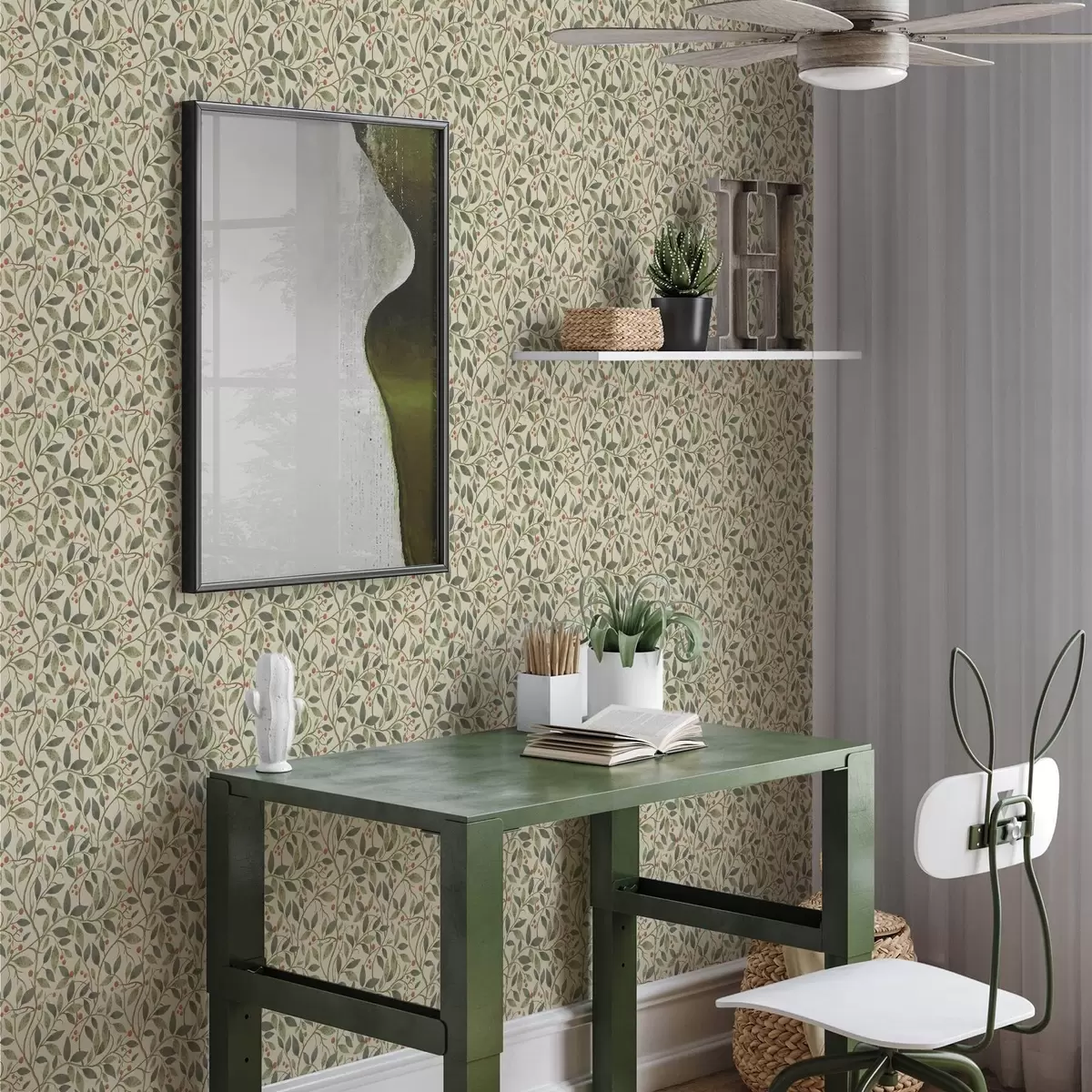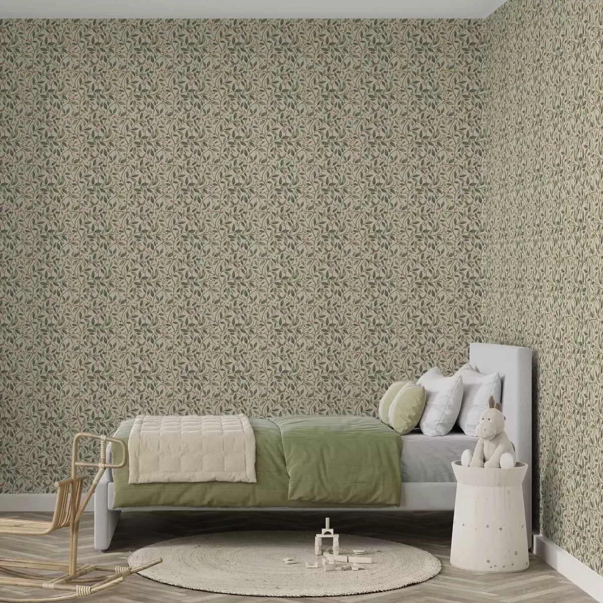 Papel pintado Ramas de olivo con bayas sobre un fondo cálido y claro Nr. a00573