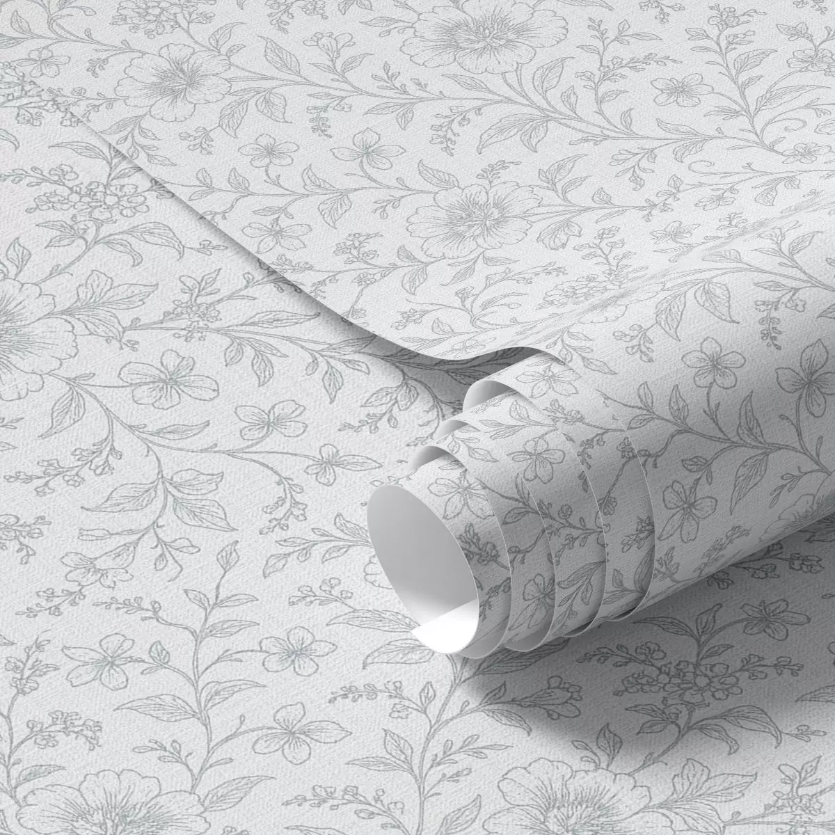 Papel pintado Delicadas flores dibujadas con trazos finos sobre un fondo blanco roto Nr. a00576