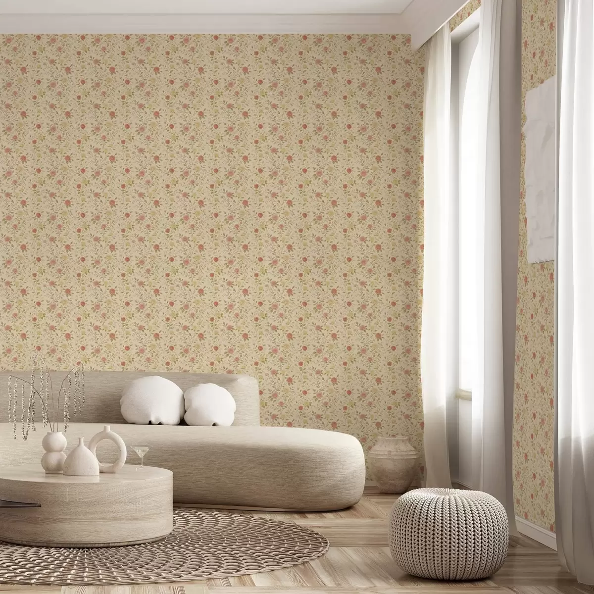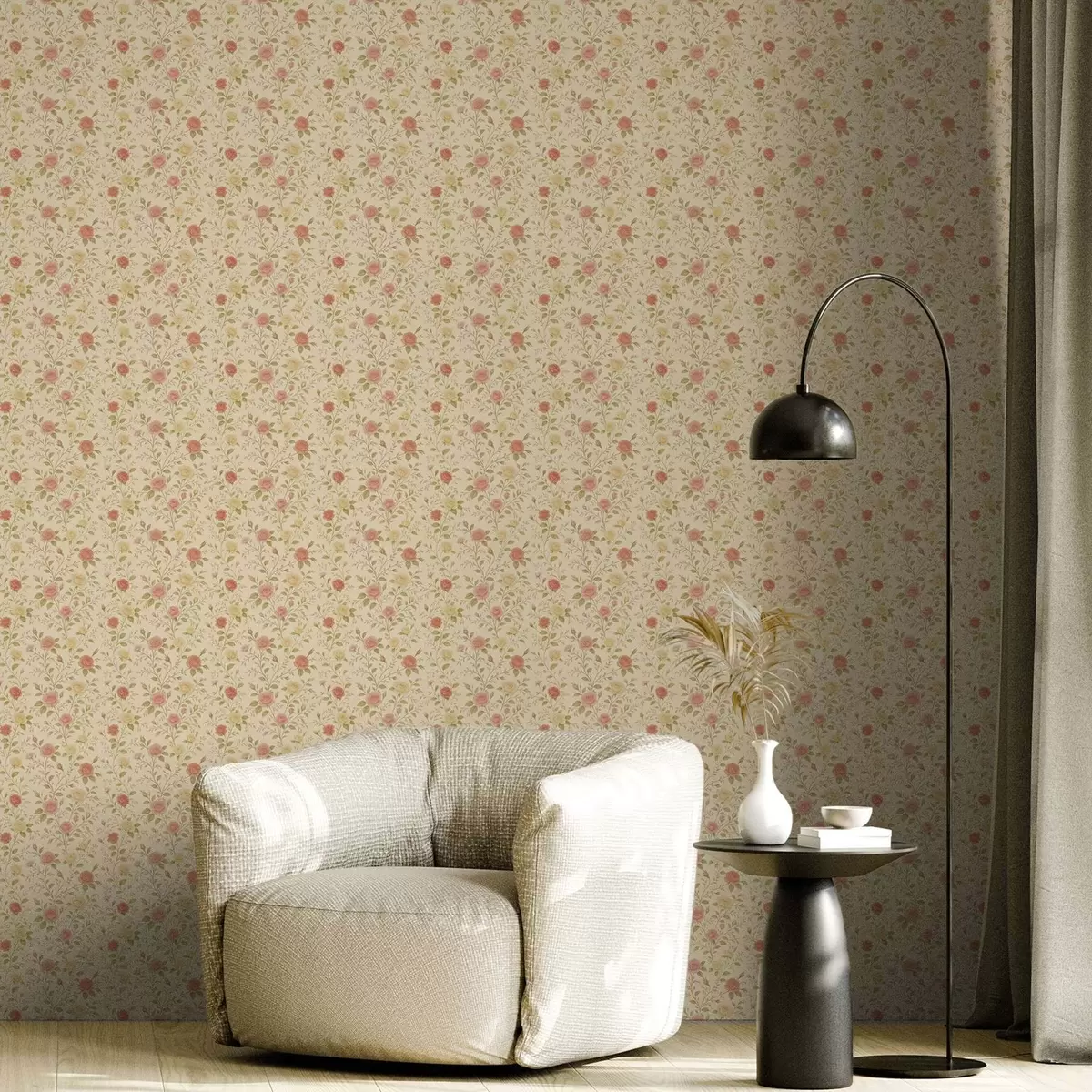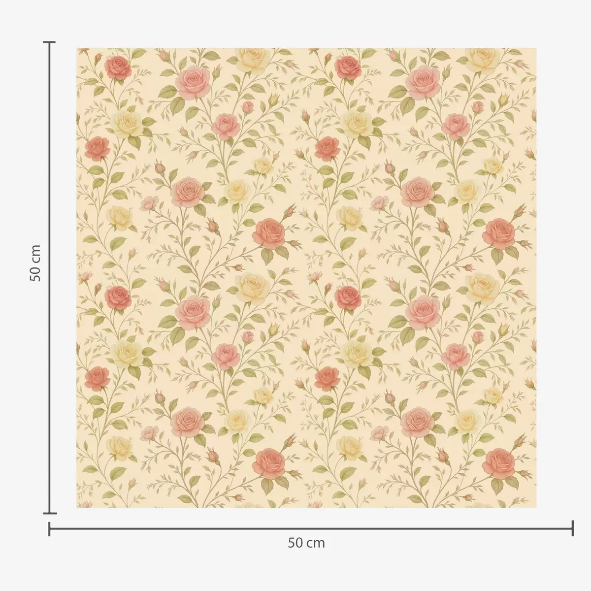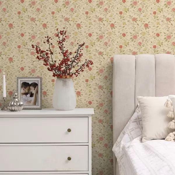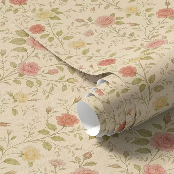 Papel pintado Rosas vintage en tonos melocotón y amarillo sobre fondo crema Nr. a00577