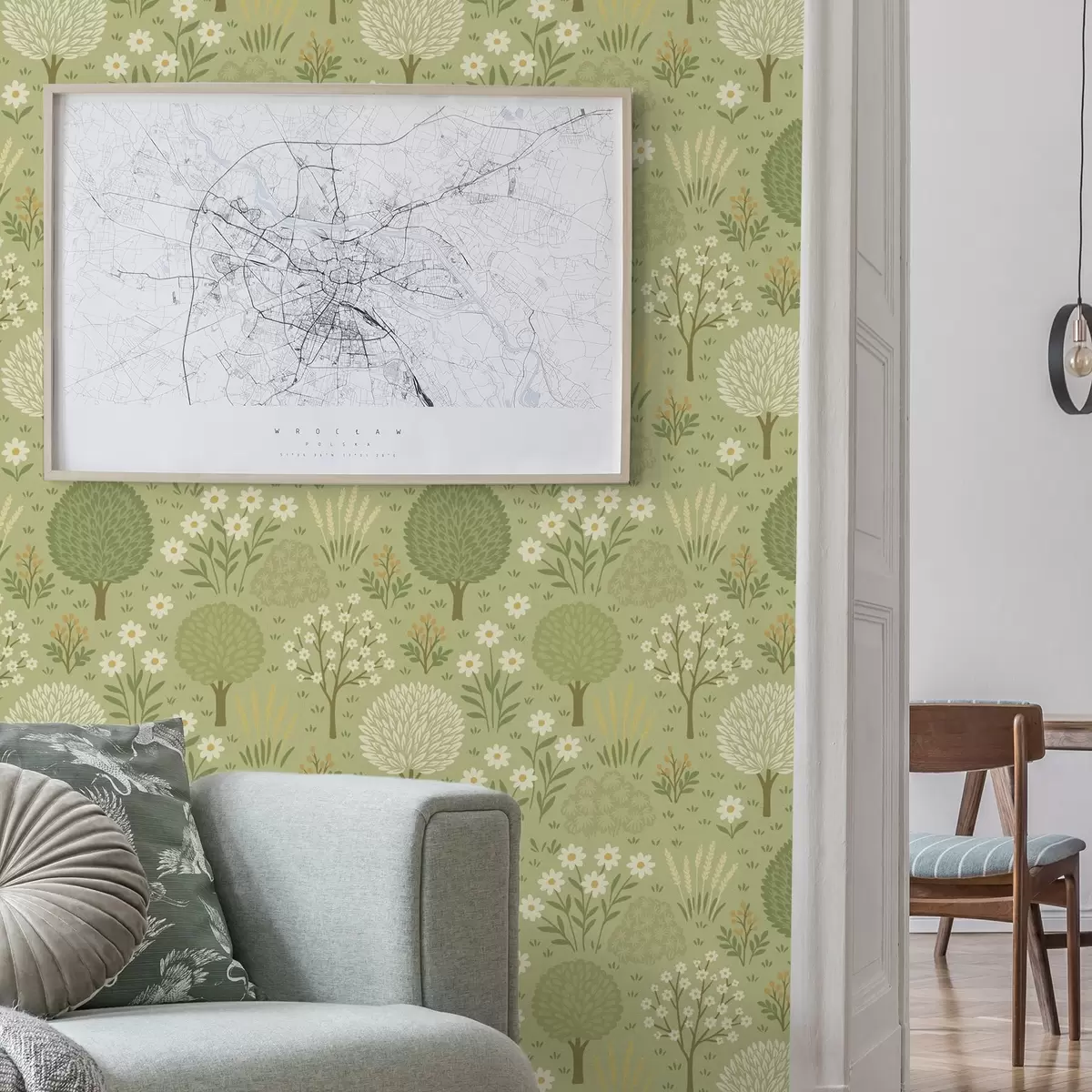 Papel pintado Jardín ecológico para niños: árboles, flores y trigo Nr. a00586