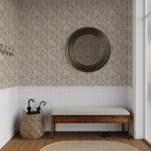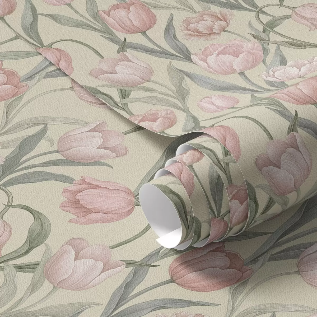 Papel pintado Tulipanes rosa pálido sobre un suave fondo beige Nr. a00589