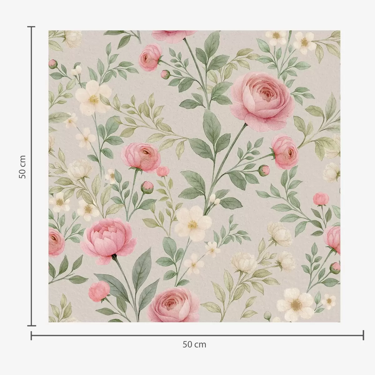 Papel pintado Peonías y flores blancas en acuarela sobre fondo gris-beige Nr. a00592