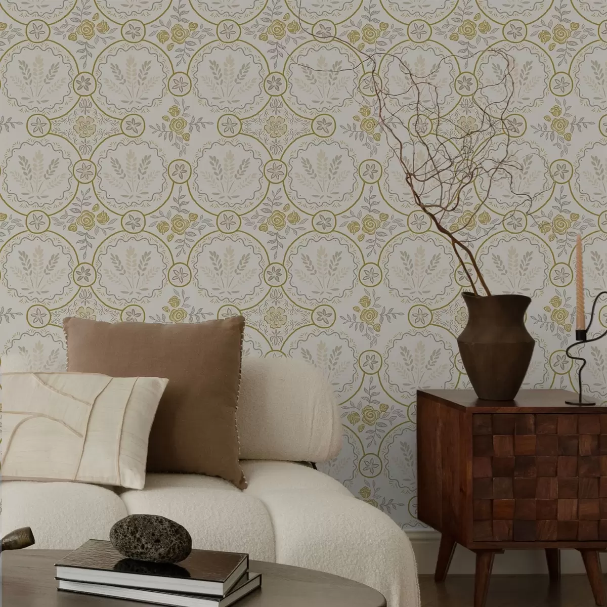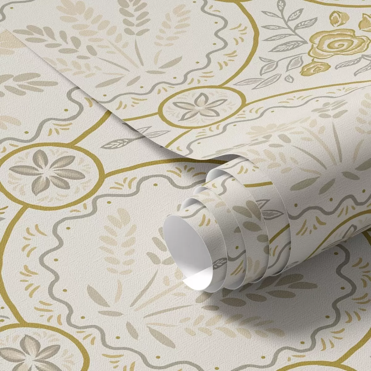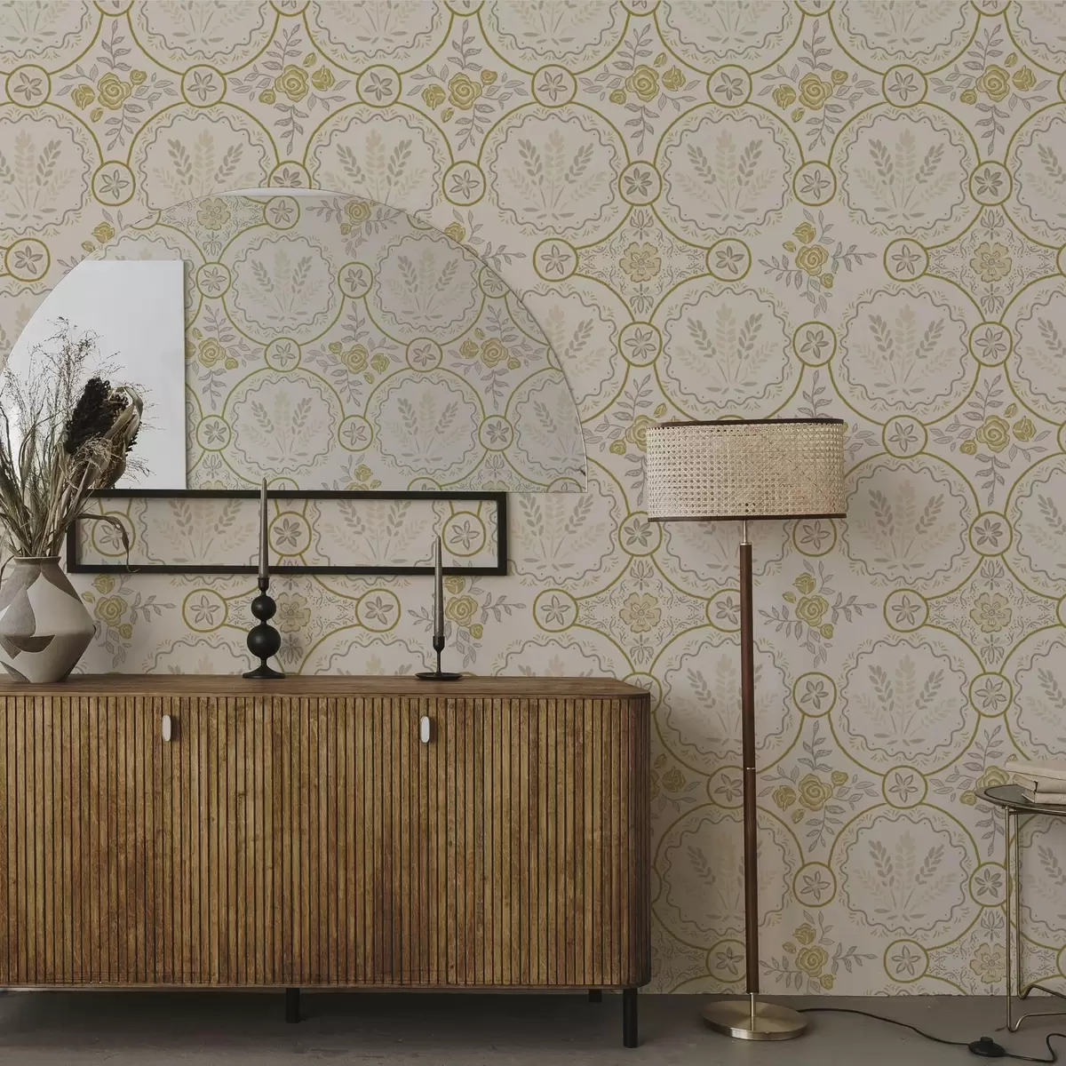 Papel pintado Adorno retro con trigo y rosas Nr. a00595