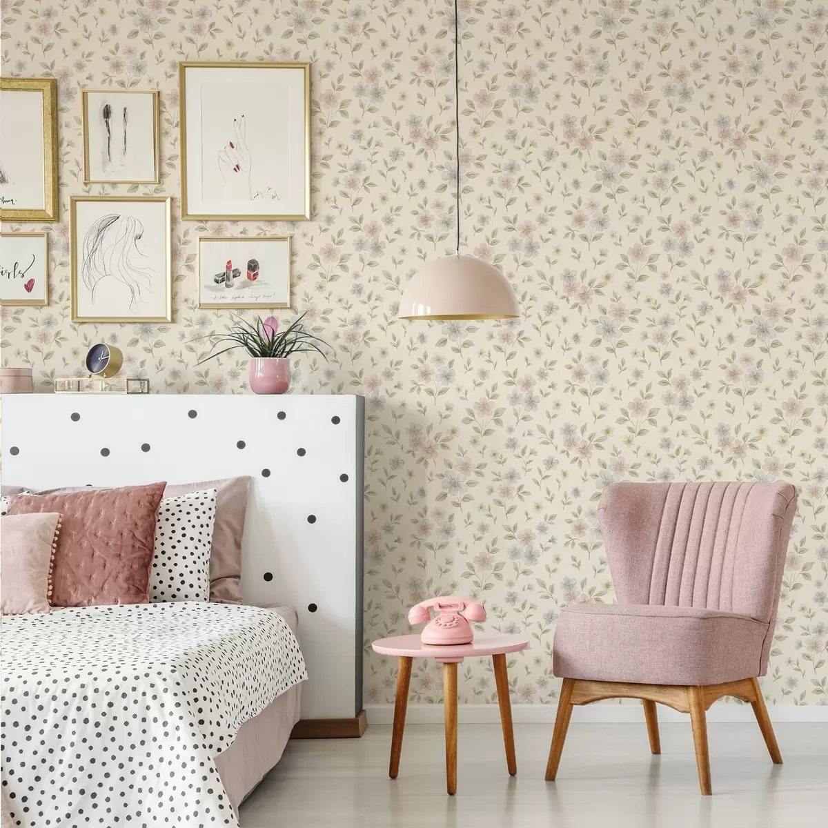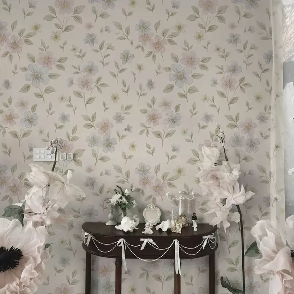Papel pintado Flores de campo en tonos pastel sobre fondo crema Nr. a00596