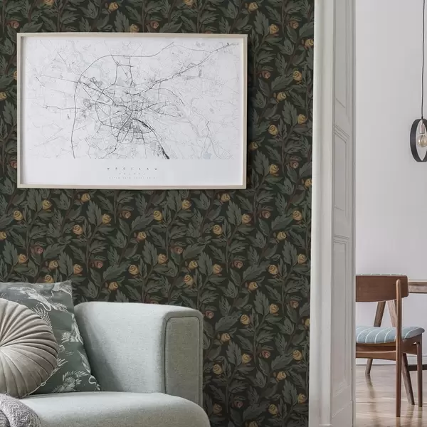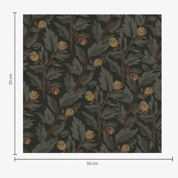 Papel pintado Estampado floral oscuro con capullos y hojas amarillos Nr. a00598