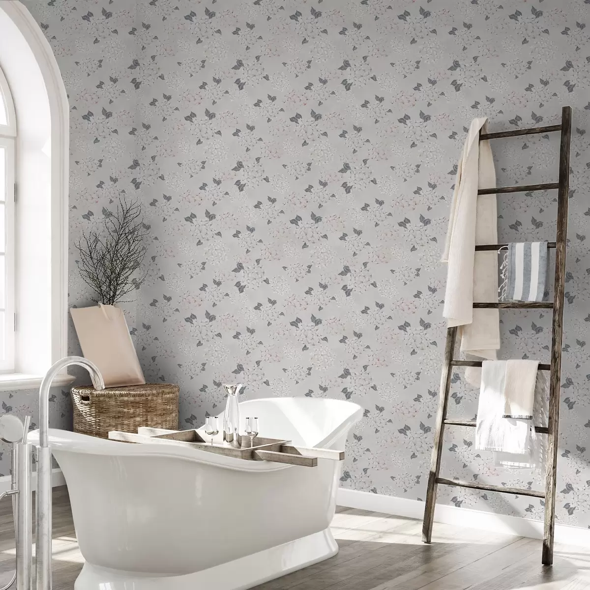 Papel pintado Flores aireadas sobre un fondo claro, suaves tonos rosa grisáceos a00600