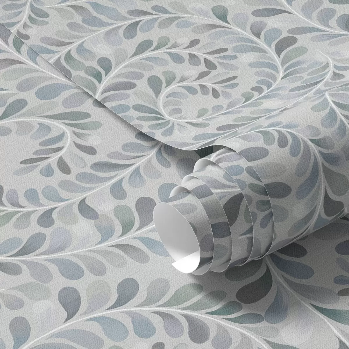 Papel pintado Hojas en espiral en una paleta de colores azul, gris y verde Nr. a00602