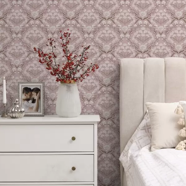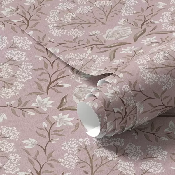 Papel pintado Damasco rosa: peonías, campanillas de invierno y racimos de encaje Nr. a00603