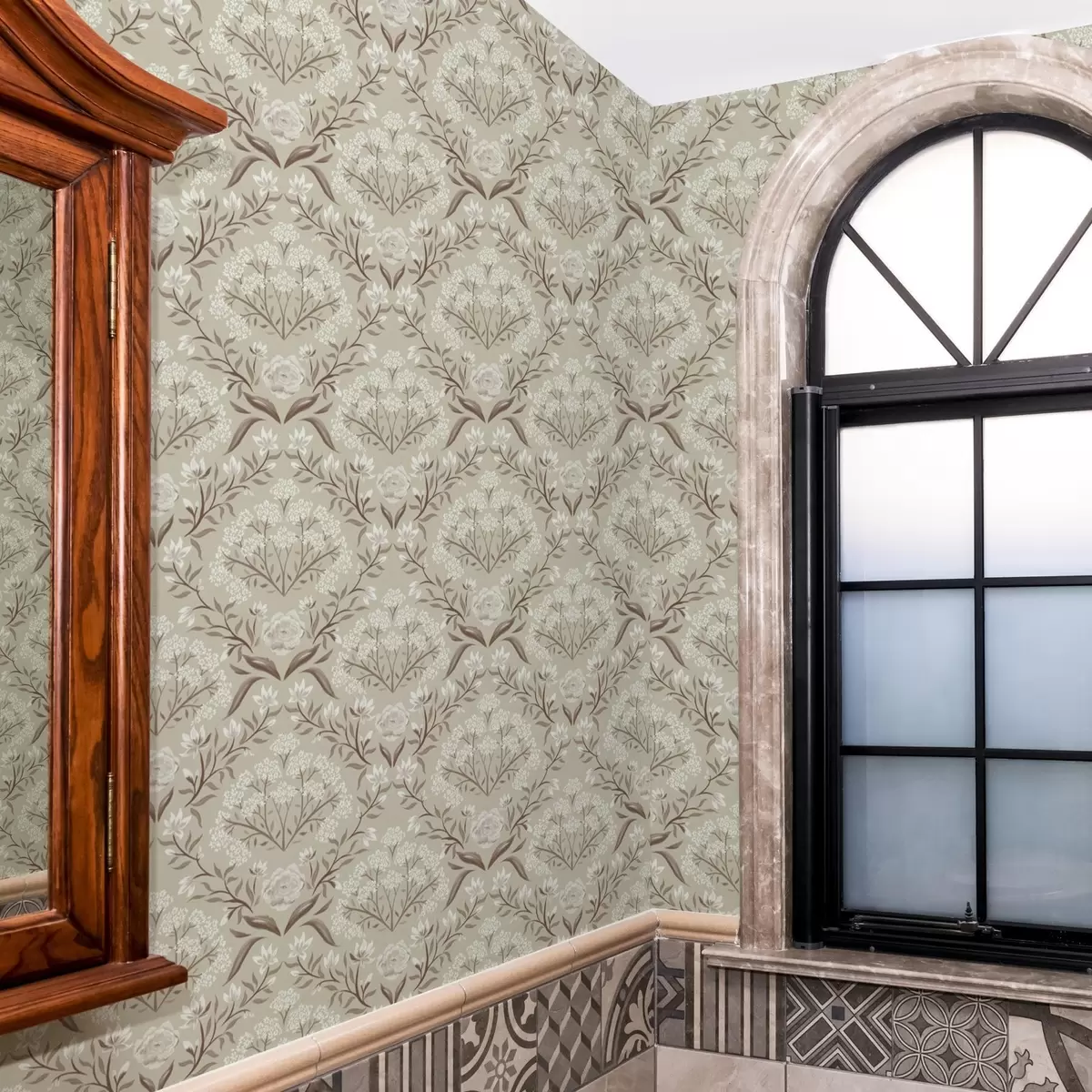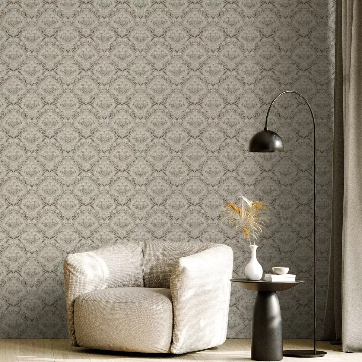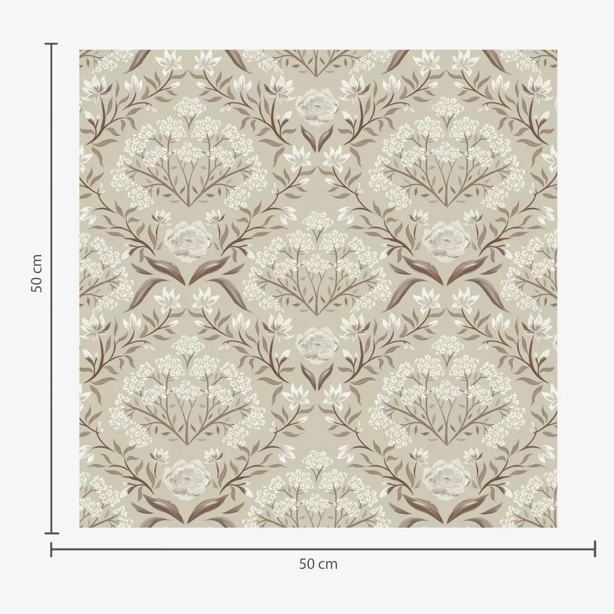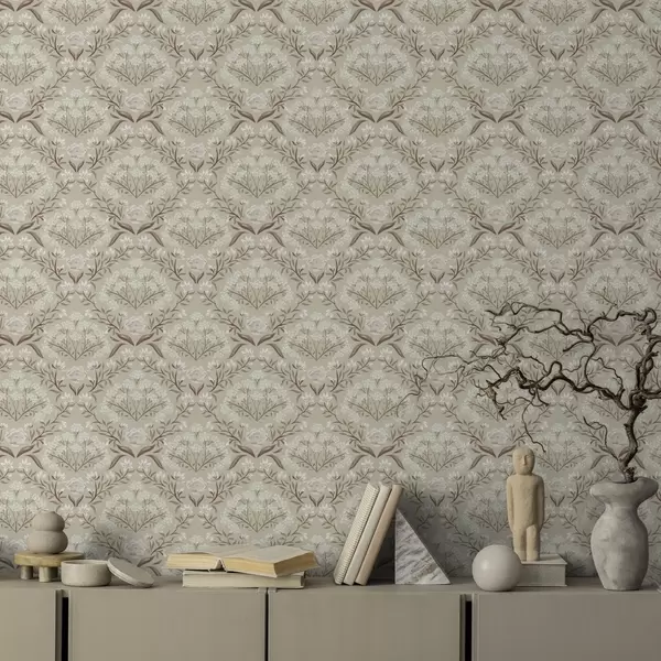 Papel pintado Damasco beige: peonías, campanillas de invierno y racimos de encaje Nr. a00603v1