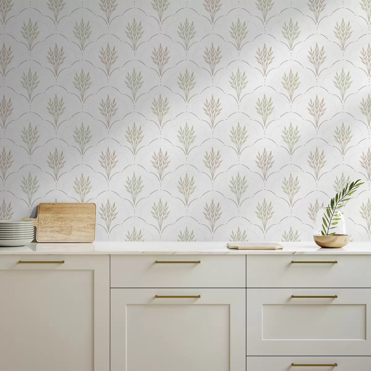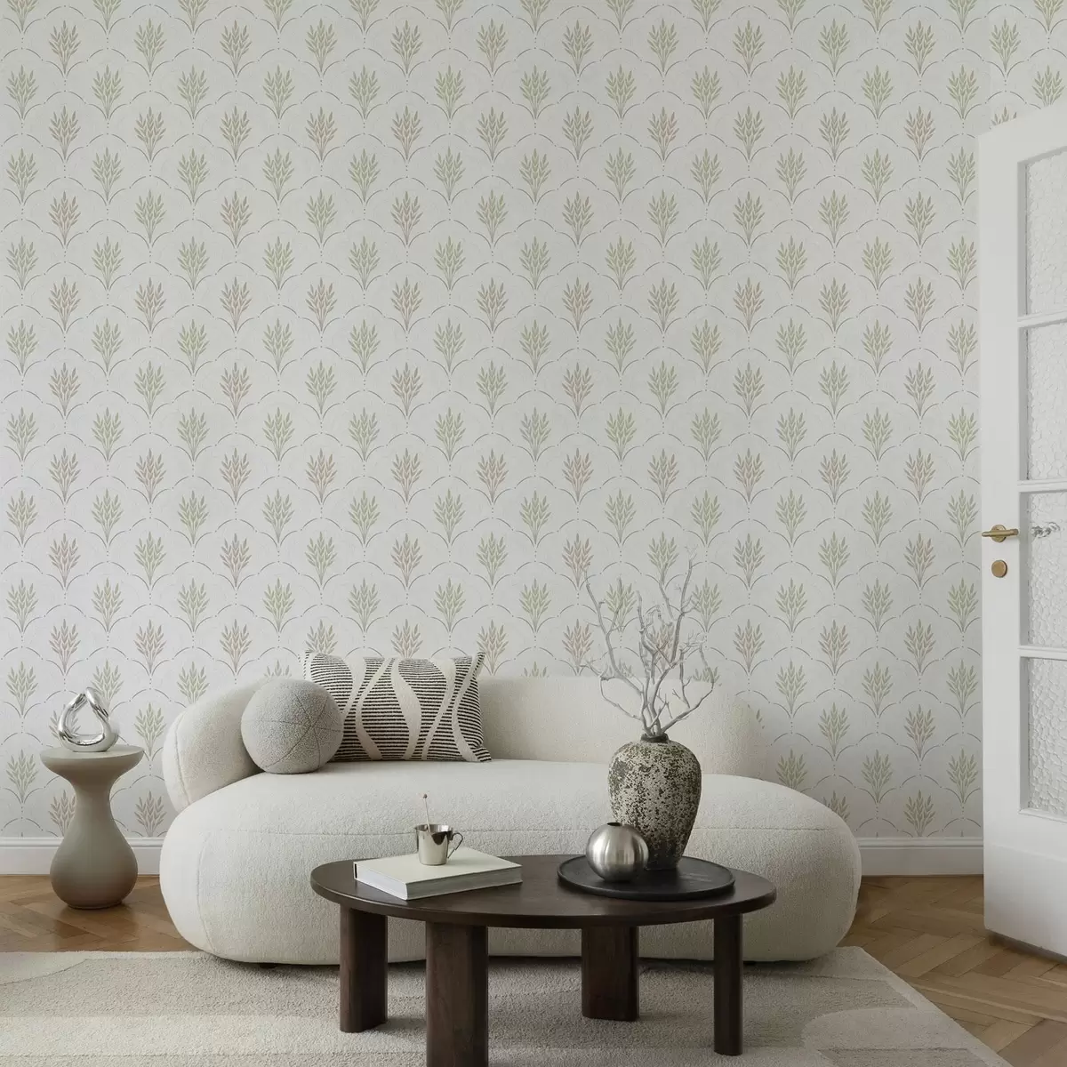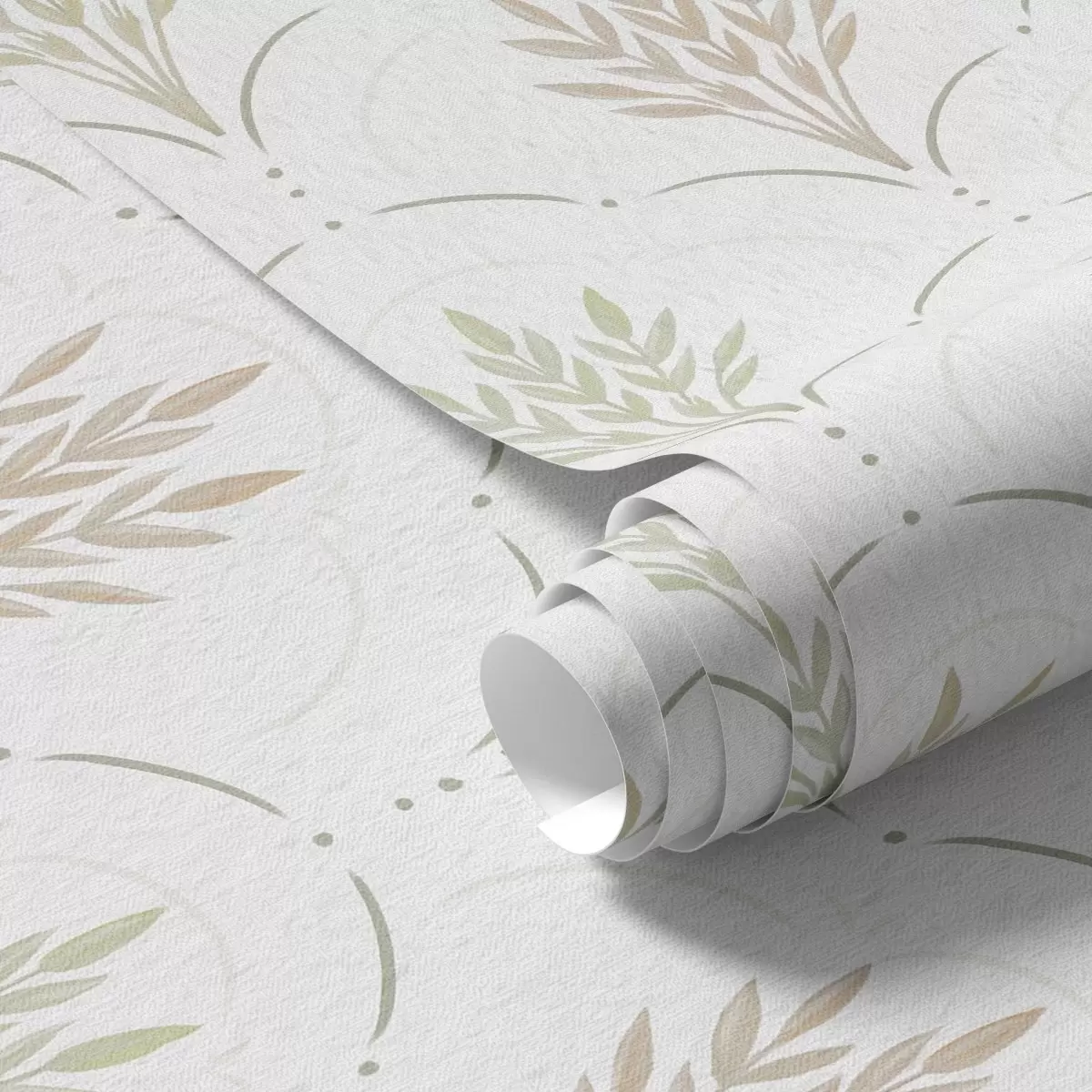 Papel pintado Trigo en un adorno arqueado, suaves tonos pastel sobre fondo blanco Nr. a00607v1