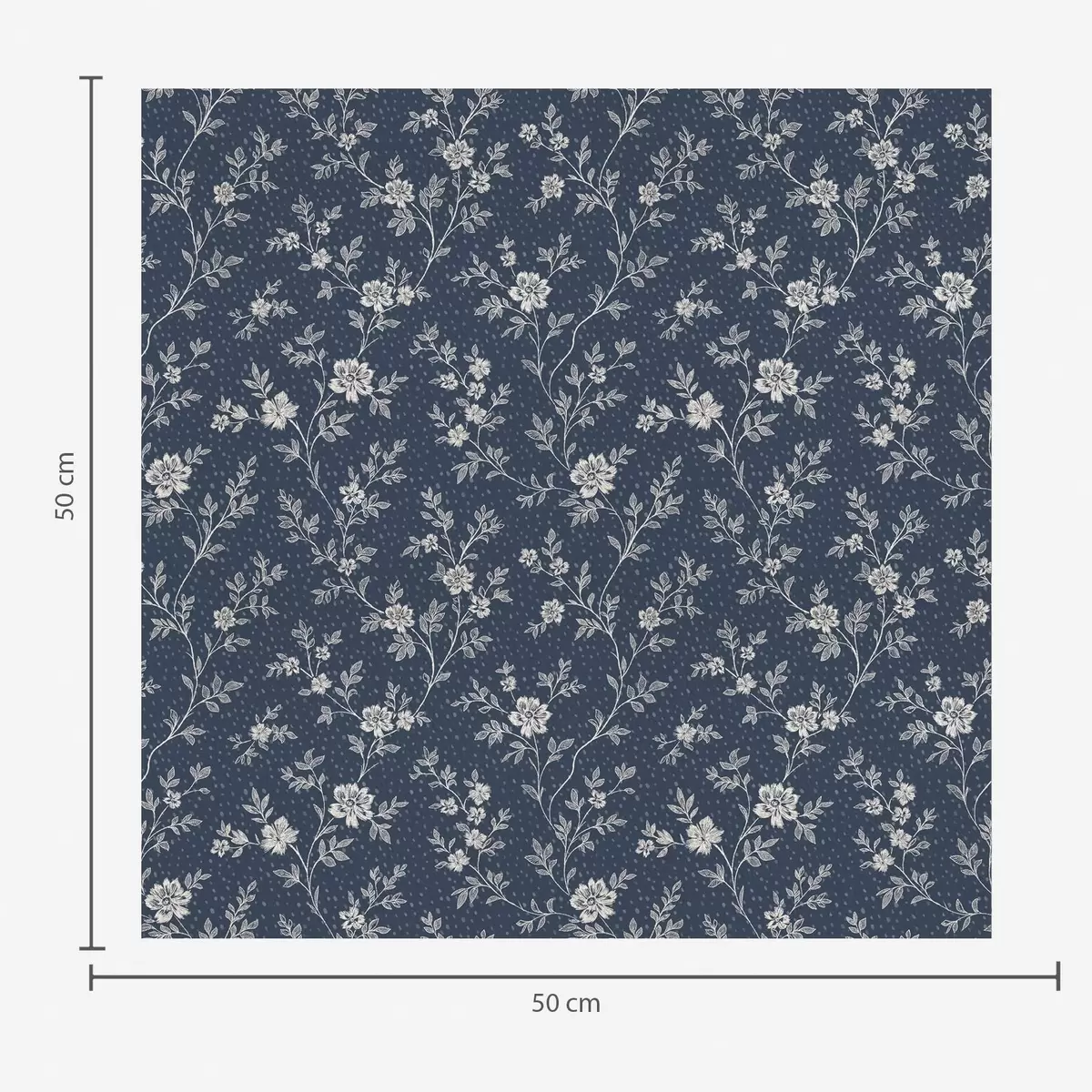 Papel pintado Fondo azul marino oscuro con finas ramas y flores de color beige Nr. a00612