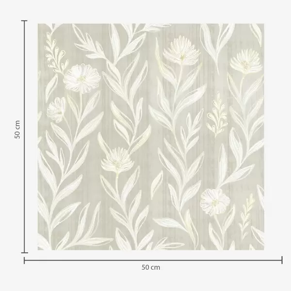 Papel pintado Hierbas y flores claras sobre fondo beige, líneas esquemáticas Nr. a00618