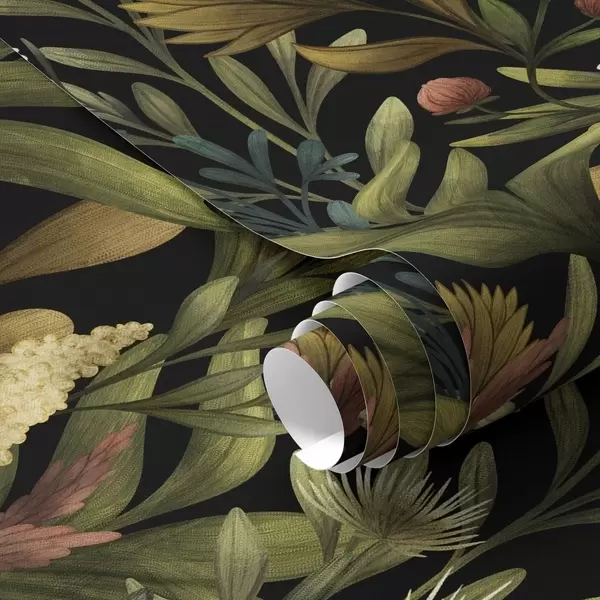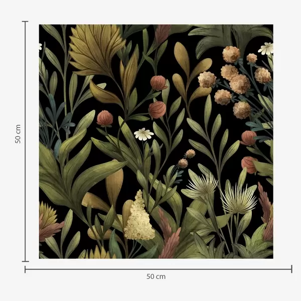 Papel pintado Jardín botánico sobre fondo negro, cálida paleta otoñal Nr. a00619