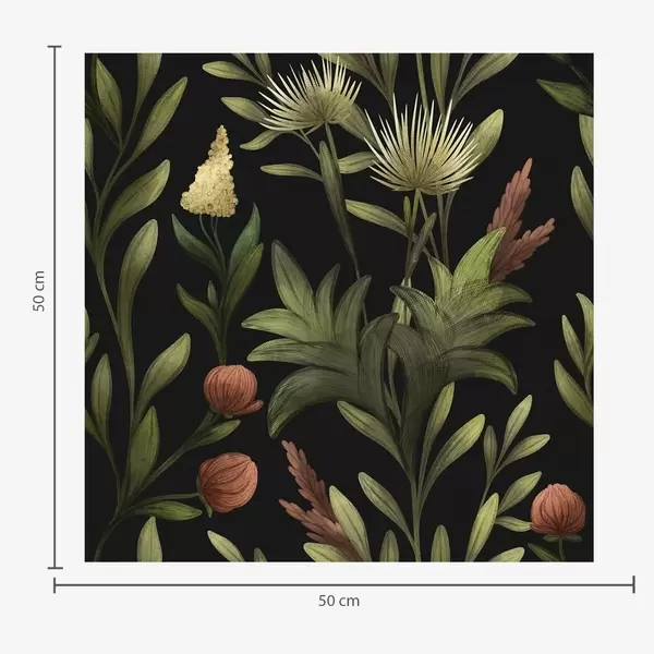 Papel pintado Hierbas altas y flores sobre fondo negro, estampado detallado Nr. a00620