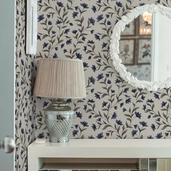 Papel pintado Campanillas y vegetación gris sobre un fondo claro Nr. a00622v1