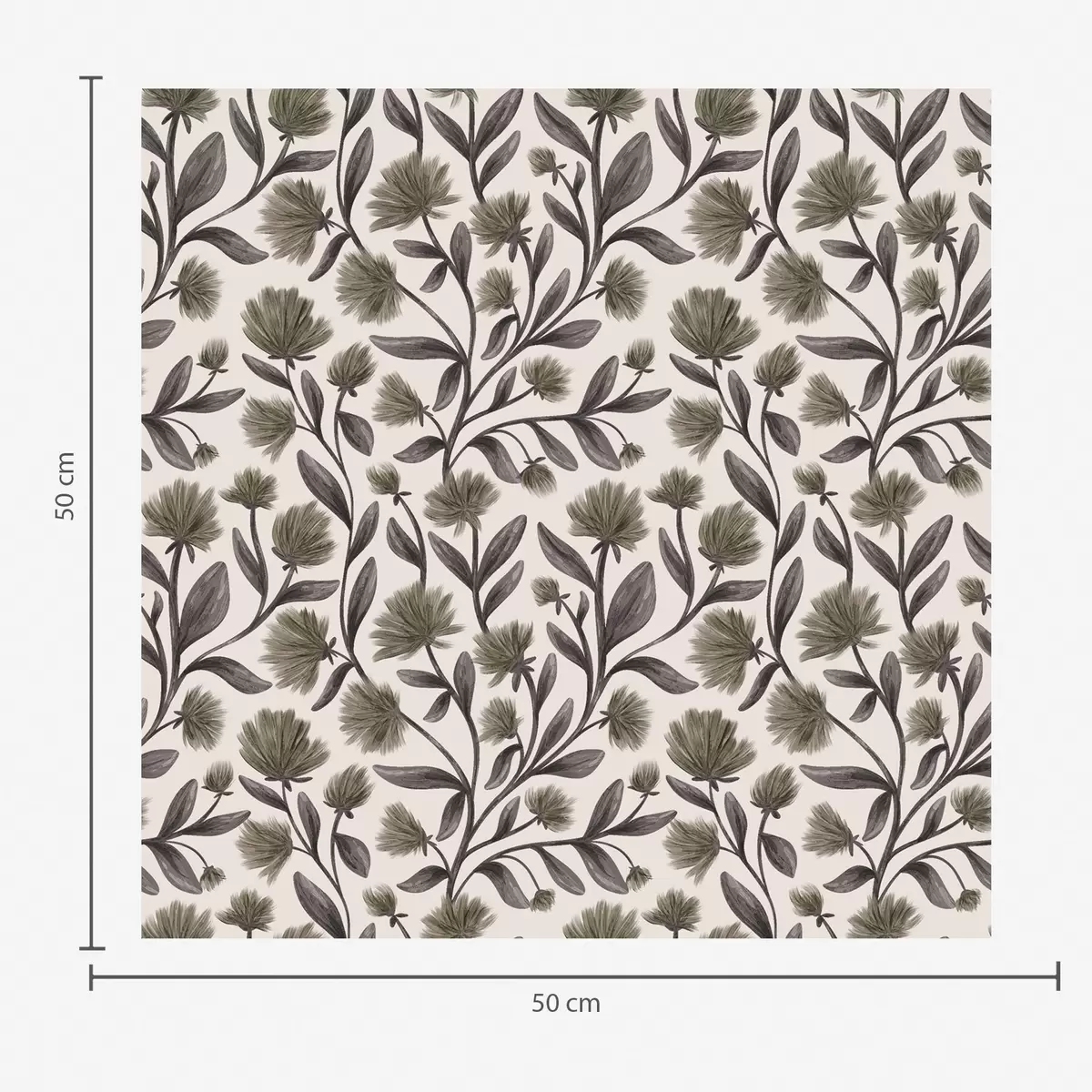 Papel pintado Flores silvestres en tonos gris oliva sobre fondo crema Nr. a00623v1