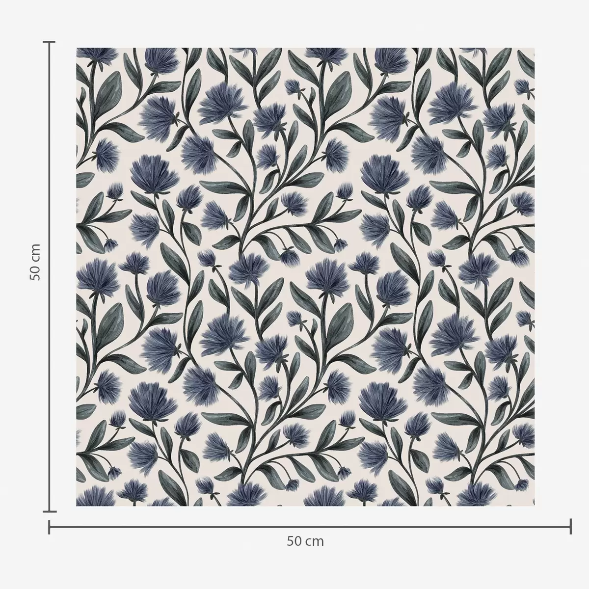 Papel pintado Flores silvestres en una paleta de colores azul verdosos sobre un fondo crema Nr. a00623v2