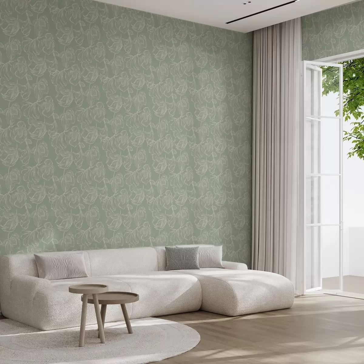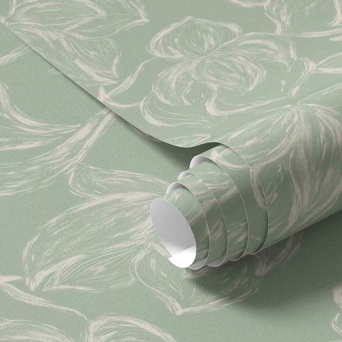 Papel pintado Flores grandes lineales, trazos de tiza sobre fondo salvia Nr. a00625v1