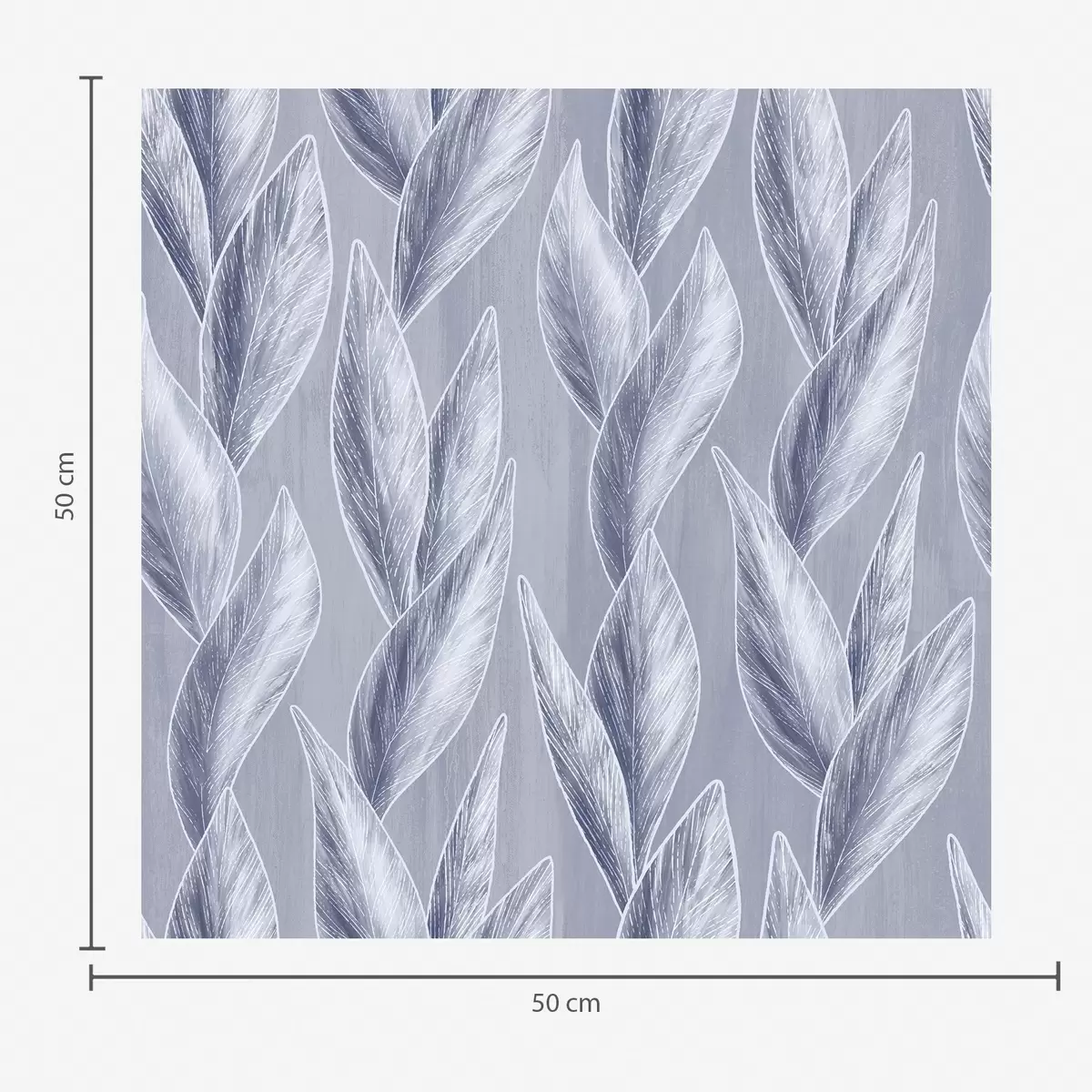 Papel pintado Hojas azul plateadas sobre fondo gris azulado, patrón gráfico Nr. a00627